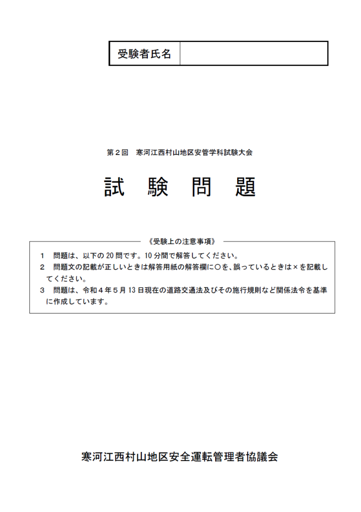 寒河江西村山地区安全運転管理者協議会(角田裕一会長)では、各事業所内において従業員が学科試験を受験し、事業所ごとに成績を競う「学科試験大会」を昨年9月12日から10月31日までの間実施しました。同大会は新型コロナウイルス感染症の蔓延で開催が困難となった地区自動車安全運転競技大会に代わるもので、加盟事業所従業員の交通法規の習熟と交通安全意識の高揚を図り交通事故を防止する目的で開催しています。