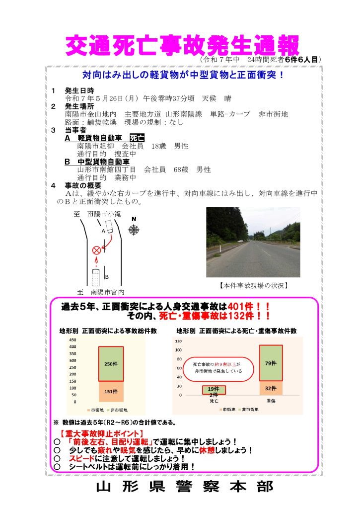 交通死亡事故発生通報 (令和7年中24時間死者6件6人目)