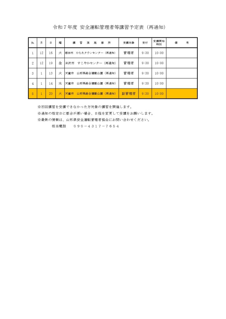 令和7年度 安全運転管理者等法定講習(初回講習)は、令和7年12月9日(火)をもって終了しました。業務等の都合で初回講習を受講できなかった安全運転管理者等の皆様にあっては、次のとおり再講習を実施しますので、必ず受講するようにしてください。