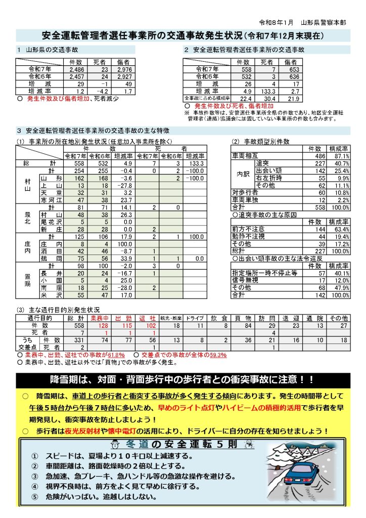 安管選任事業所の交通事故発生状況を更新しましたのでご覧ください。