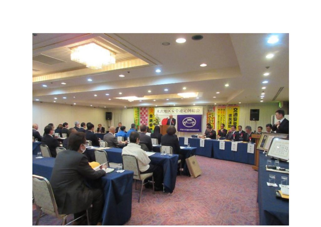 米沢地区安全運転管理者連絡協議会(武田良宏会長)では、令和8年3月6日(金)午後4時からホテルモントビュー米沢(米沢市)において、「令和8年度米沢地区安全運転管理者連絡協議会定例総会」を開催しました。総会には約90名が参加し、交通事故犠牲者への黙とう後、交通栄誉賞緑十字銀章・銅章の伝達、優良事業所3社、優良安全運転管理者10名、優良運転者12名の表彰を行い、役員挨拶、来賓祝辞の後、議事に進み、上程された議案の協議及び新年度役員改選を行いました。議事終了後、令和7年10月2日に開催された「第3回ブラッシュアップセミナー」出席者から伝承教養を行い総会を終了しました。