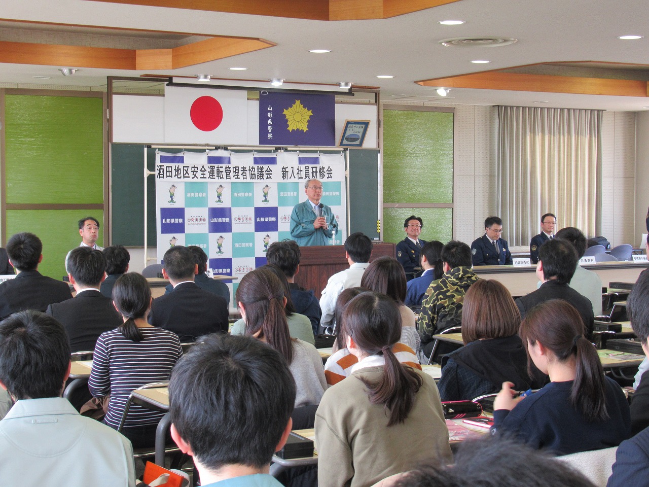 酒田地区安全運転管理者協議会(上林直樹会長)は、平成31年4月11日、酒田警察署において新入社員交通安全研修会を開催しました。国道7号線での立哨活動や飲酒運転ゴーグル体験等を通し安全運転の意識を高めました。