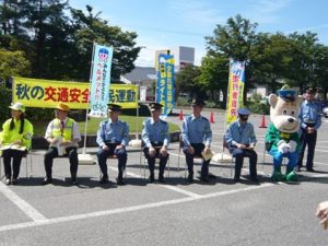 米沢地区安全運転管理者連絡協議会(武田良宏会長)は、令和7年9月19日(金)午前10時から置賜総合支庁玄関前において開催された「令和7年秋の交通安全県民運動出発式」に参加しました。